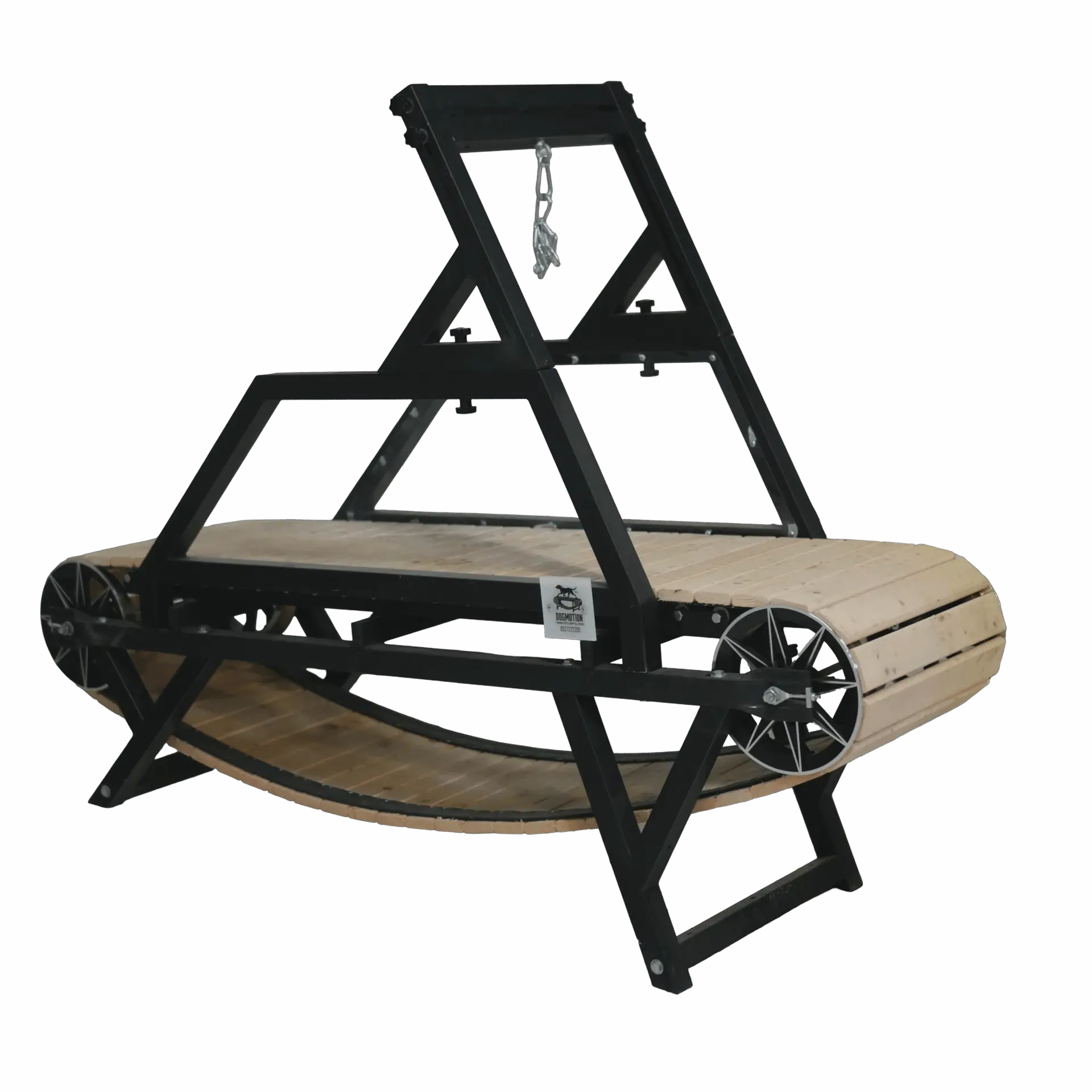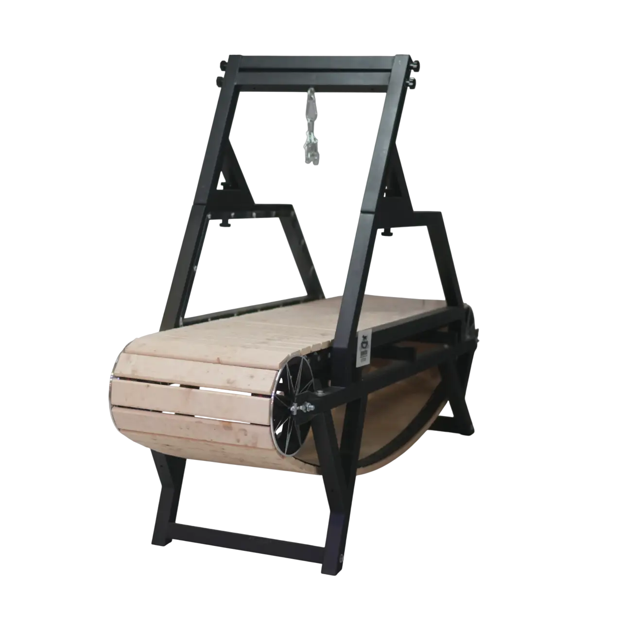 המסוע עשוי מעץ עמיד ואיכותי, המבטיח תנועה חלקה ושקטה לכל אורך האימון. מבנה ההליכון תוכנן כך שיתאים לכלבים עד משקל 30 ק"ג, תוך שמירה על יציבות מלאה ובטיחות גבוהה. השימוש פשוט ואינטואיטיבי, ללא צורך בחיבור לחשמל – הכלב שולט בקצב, נעצר וממשיך כרצונו, בצורה טבעית ונעימה.